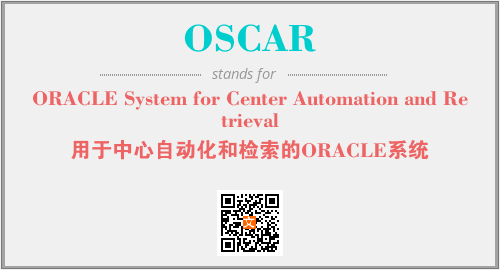 以上为ORACLE System for Center Automation and Retrieval英文缩略词OSCAR的中文解释,以及该英文缩写在英语的流行度、分类和应用领域方面的信息。