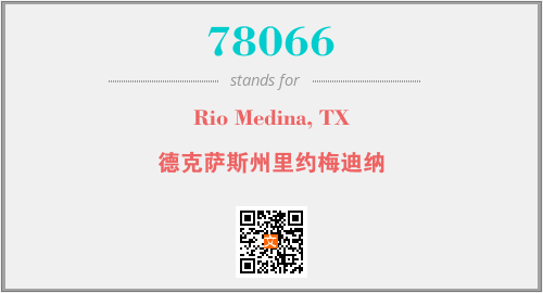 上述内容是“Rio Medina, TX”作为“78066”的缩写,解释为“德克萨斯州里约梅迪纳”时的信息,以及英文缩略词78066所代表的英文单词,其对应的中文拼音、详细解释以及在英文中的流行度和相关分类、应用领域及应用示例等。
