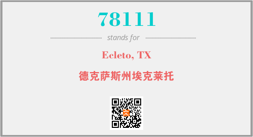 上述内容是“Ecleto, TX”作为“78111”的缩写,解释为“德克萨斯州埃克莱托”时的信息,以及英文缩略词78111所代表的英文单词,其对应的中文拼音、详细解释以及在英文中的流行度和相关分类、应用领域及应用示例等。