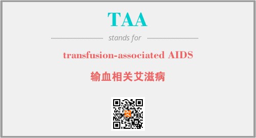 上述内容是“transfusion-associated AIDS”作为“TAA”的缩写,解释为“输血相关艾滋病”时的信息,以及英文缩略词TAA所代表的英文单词,其对应的中文拼音、详细解释以及在英文中的流行度和相关分类、应用领域及应用示例等。