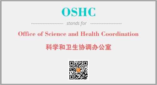 上述内容是“Office of Science and Health Coordination”作为“OSHC”的缩写,解释为“科学和卫生协调办公室”时的信息,以及英文缩略词OSHC所代表的英文单词,其对应的中文拼音、详细解释以及在英文中的流行度和相关分类、应用领域及应用示例等。