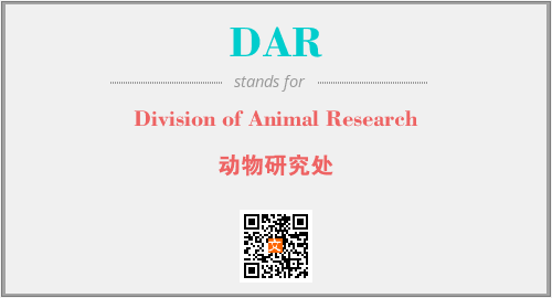 上述内容是“Division of Animal Research”作为“DAR”的缩写,解释为“动物研究处”时的信息,以及英文缩略词DAR所代表的英文单词,其对应的中文拼音、详细解释以及在英文中的流行度和相关分类、应用领域及应用示例等。