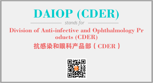 上述内容是“Division of Anti-infective and Ophthalmology Products (CDER)”作为“DAIOP (CDER)”的缩写,解释为“抗感染和眼科产品部(CDER)”时的信息,以及英文缩略词DAIOP (CDER)所代表的英文单词,其对应的中文拼音、详细解释以及在英文中的流行度和相关分类、应用领域及应用示例等。