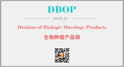 上述内容是“Division of Biologic Oncology Products”作为“DBOP”的缩写,解释为“生物肿瘤产品部”时的信息,以及英文缩略词DBOP所代表的英文单词,其对应的中文拼音、详细解释以及在英文中的流行度和相关分类、应用领域及应用示例等。