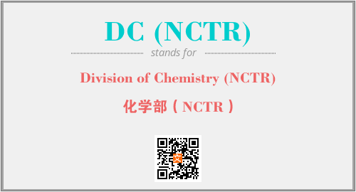 上述内容是“Division of Chemistry (NCTR)”作为“DC (NCTR)”的缩写,解释为“化学部(NCTR)”时的信息,以及英文缩略词DC (NCTR)所代表的英文单词,其对应的中文拼音、详细解释以及在英文中的流行度和相关分类、应用领域及应用示例等。