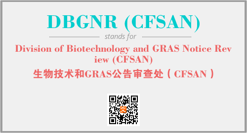 英文缩略词“DBGNR (CFSAN)”经常作为“Division of Biotechnology and GRAS Notice Review (CFSAN)”的英文缩写来使用,中文表示:“生物技术和GRAS公告审查处(CFSAN)”。本文将详细介绍英文缩写词DBGNR (CFSAN)所代表英文单词,其对应的中文拼音、详细解释以及在英语中的流行度。此外,还有关于缩略词DBGNR (CFSAN)的分类、应用领域及相关应用示例等。