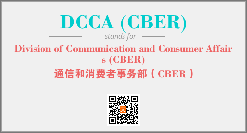 上述内容是“Division of Communication and Consumer Affairs (CBER)”作为“DCCA (CBER)”的缩写,解释为“通信和消费者事务部(CBER)”时的信息,以及英文缩略词DCCA (CBER)所代表的英文单词,其对应的中文拼音、详细解释以及在英文中的流行度和相关分类、应用领域及应用示例等。