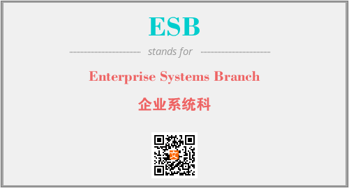 上述内容是“Enterprise Systems Branch”作为“ESB”的缩写,解释为“企业系统科”时的信息,以及英文缩略词ESB所代表的英文单词,其对应的中文拼音、详细解释以及在英文中的流行度和相关分类、应用领域及应用示例等。