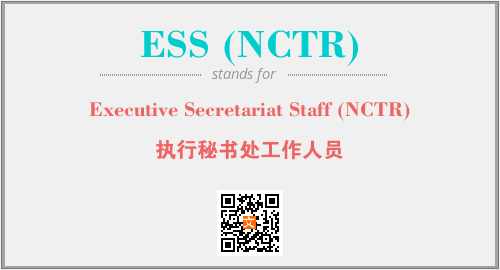 英文缩略词“ESS (NCTR)”经常作为“Executive Secretariat Staff (NCTR)”的英文缩写来使用,中文表示:“执行秘书处工作人员”。本文将详细介绍英文缩写词ESS (NCTR)所代表英文单词,其对应的中文拼音、详细解释以及在英语中的流行度。此外,还有关于缩略词ESS (NCTR)的分类、应用领域及相关应用示例等。