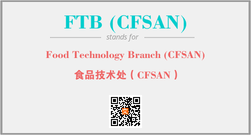 上述内容是“Food Technology Branch (CFSAN)”作为“FTB (CFSAN)”的缩写,解释为“食品技术处(CFSAN)”时的信息,以及英文缩略词FTB (CFSAN)所代表的英文单词,其对应的中文拼音、详细解释以及在英文中的流行度和相关分类、应用领域及应用示例等。