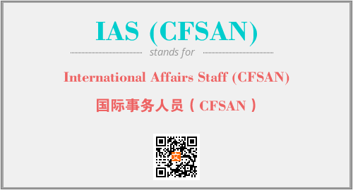 上述内容是“International Affairs Staff (CFSAN)”作为“IAS (CFSAN)”的缩写,解释为“国际事务人员(CFSAN)”时的信息,以及英文缩略词IAS (CFSAN)所代表的英文单词,其对应的中文拼音、详细解释以及在英文中的流行度和相关分类、应用领域及应用示例等。