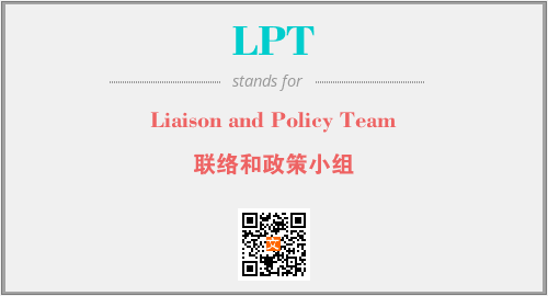 以上为Liaison and Policy Team英文缩略词LPT的中文解释,以及该英文缩写在英语的流行度、分类和应用领域方面的信息。