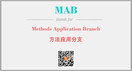 英文缩略词“MAB”经常作为“Methods Application Branch”的英文缩写来使用,中文表示:“方法应用分支”。本文将详细介绍英文缩写词MAB所代表英文单词,其对应的中文拼音、详细解释以及在英语中的流行度。此外,还有关于缩略词MAB的分类、应用领域及相关应用示例等。