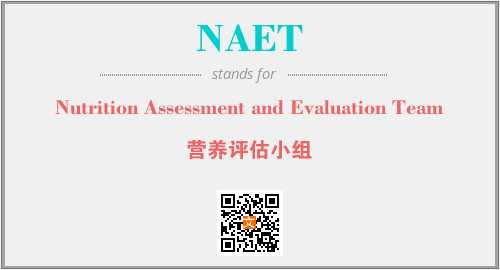 以上为Nutrition Assessment and Evaluation Team英文缩略词NAET的中文解释,以及该英文缩写在英语的流行度、分类和应用领域方面的信息。