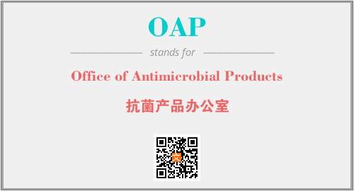 上述内容是“Office of Antimicrobial Products”作为“OAP”的缩写,解释为“抗菌产品办公室”时的信息,以及英文缩略词OAP所代表的英文单词,其对应的中文拼音、详细解释以及在英文中的流行度和相关分类、应用领域及应用示例等。