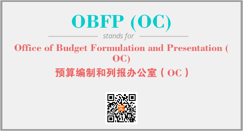 上述内容是“Office of Budget Formulation and Presentation (OC)”作为“OBFP (OC)”的缩写,解释为“预算编制和列报办公室(OC)”时的信息,以及英文缩略词OBFP (OC)所代表的英文单词,其对应的中文拼音、详细解释以及在英文中的流行度和相关分类、应用领域及应用示例等。