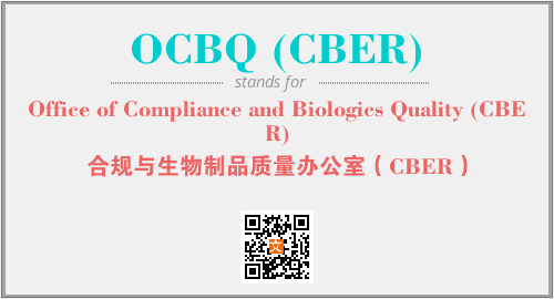 上述内容是“Office of Compliance and Biologics Quality (CBER)”作为“OCBQ (CBER)”的缩写,解释为“合规与生物制品质量办公室(CBER)”时的信息,以及英文缩略词OCBQ (CBER)所代表的英文单词,其对应的中文拼音、详细解释以及在英文中的流行度和相关分类、应用领域及应用示例等。