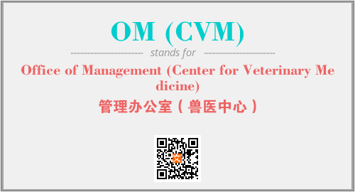 英文缩略词“OM (CVM)”经常作为“Office of Management (Center for Veterinary Medicine)”的英文缩写来使用,中文表示:“管理办公室(兽医中心)”。本文将详细介绍英文缩写词OM (CVM)所代表英文单词,其对应的中文拼音、详细解释以及在英语中的流行度。此外,还有关于缩略词OM (CVM)的分类、应用领域及相关应用示例等。