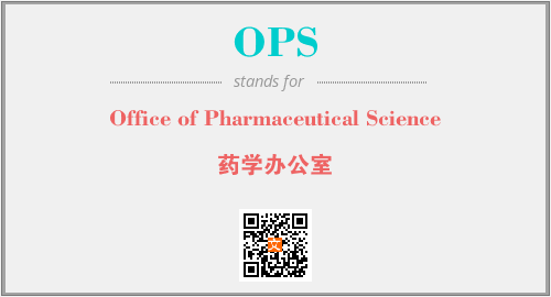 上述内容是“Office of Pharmaceutical Science”作为“OPS”的缩写,解释为“药学办公室”时的信息,以及英文缩略词OPS所代表的英文单词,其对应的中文拼音、详细解释以及在英文中的流行度和相关分类、应用领域及应用示例等。