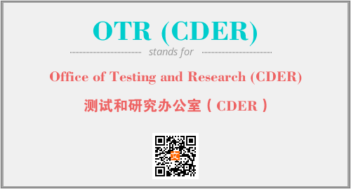 上述内容是“Office of Testing and Research (CDER)”作为“OTR (CDER)”的缩写,解释为“测试和研究办公室(CDER)”时的信息,以及英文缩略词OTR (CDER)所代表的英文单词,其对应的中文拼音、详细解释以及在英文中的流行度和相关分类、应用领域及应用示例等。