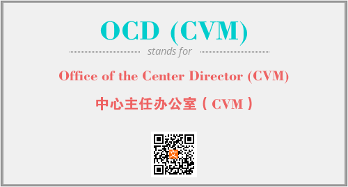 上述内容是“Office of the Center Director (CVM)”作为“OCD (CVM)”的缩写,解释为“中心主任办公室(CVM)”时的信息,以及英文缩略词OCD (CVM)所代表的英文单词,其对应的中文拼音、详细解释以及在英文中的流行度和相关分类、应用领域及应用示例等。