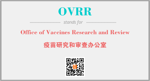 上述内容是“Office of Vaccines Research and Review”作为“OVRR”的缩写,解释为“疫苗研究和审查办公室”时的信息,以及英文缩略词OVRR所代表的英文单词,其对应的中文拼音、详细解释以及在英文中的流行度和相关分类、应用领域及应用示例等。
