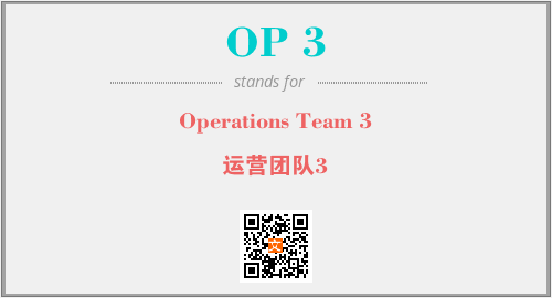 上述内容是“Operations Team 3”作为“OP 3”的缩写,解释为“运营团队3”时的信息,以及英文缩略词OP 3所代表的英文单词,其对应的中文拼音、详细解释以及在英文中的流行度和相关分类、应用领域及应用示例等。