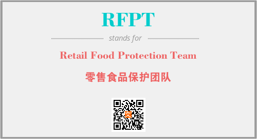 上述内容是“Retail Food Protection Team”作为“RFPT”的缩写,解释为“零售食品保护团队”时的信息,以及英文缩略词RFPT所代表的英文单词,其对应的中文拼音、详细解释以及在英文中的流行度和相关分类、应用领域及应用示例等。