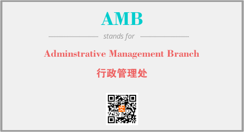 英文缩略词“AMB”经常作为“Adminstrative Management Branch”的英文缩写来使用,中文表示:“行政管理处”。本文将详细介绍英文缩写词AMB所代表英文单词,其对应的中文拼音、详细解释以及在英语中的流行度。此外,还有关于缩略词AMB的分类、应用领域及相关应用示例等。