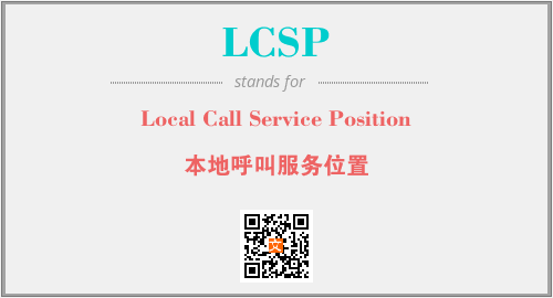 上述内容是“Local Call Service Position”作为“LCSP”的缩写,解释为“本地呼叫服务位置”时的信息,以及英文缩略词LCSP所代表的英文单词,其对应的中文拼音、详细解释以及在英文中的流行度和相关分类、应用领域及应用示例等。