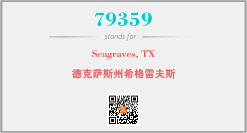 上述内容是“Seagraves, TX”作为“79359”的缩写,解释为“德克萨斯州希格雷夫斯”时的信息,以及英文缩略词79359所代表的英文单词,其对应的中文拼音、详细解释以及在英文中的流行度和相关分类、应用领域及应用示例等。