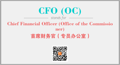 上述内容是“Chief Financial Officer (Office of the Commissioner)”作为“CFO (OC)”的缩写,解释为“首席财务官(专员办公室)”时的信息,以及英文缩略词CFO (OC)所代表的英文单词,其对应的中文拼音、详细解释以及在英文中的流行度和相关分类、应用领域及应用示例等。