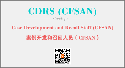 英文缩略词“CDRS (CFSAN)”经常作为“Case Development and Recall Staff (CFSAN)”的英文缩写来使用,中文表示:“案例开发和召回人员(CFSAN)”。本文将详细介绍英文缩写词CDRS (CFSAN)所代表英文单词,其对应的中文拼音、详细解释以及在英语中的流行度。此外,还有关于缩略词CDRS (CFSAN)的分类、应用领域及相关应用示例等。