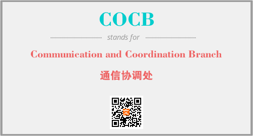 英文缩略词“COCB”经常作为“Communication and Coordination Branch”的英文缩写来使用,中文表示:“通信协调处”。本文将详细介绍英文缩写词COCB所代表英文单词,其对应的中文拼音、详细解释以及在英语中的流行度。此外,还有关于缩略词COCB的分类、应用领域及相关应用示例等。