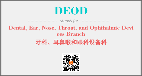 上述内容是“Dental, Ear, Nose, Throat, and Ophthalmic Devices Branch”作为“DEOD”的缩写,解释为“牙科、耳鼻喉和眼科设备科”时的信息,以及英文缩略词DEOD所代表的英文单词,其对应的中文拼音、详细解释以及在英文中的流行度和相关分类、应用领域及应用示例等。