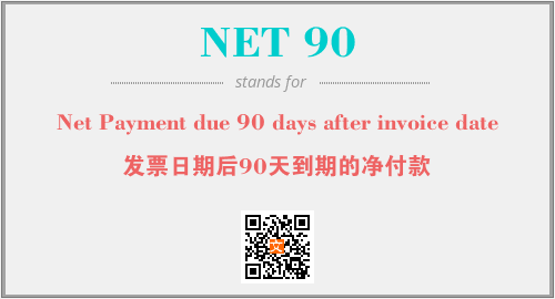 上述内容是“Net Payment due 90 days after invoice date”作为“NET 90”的缩写,解释为“发票日期后90天到期的净付款”时的信息,以及英文缩略词NET 90所代表的英文单词,其对应的中文拼音、详细解释以及在英文中的流行度和相关分类、应用领域及应用示例等。