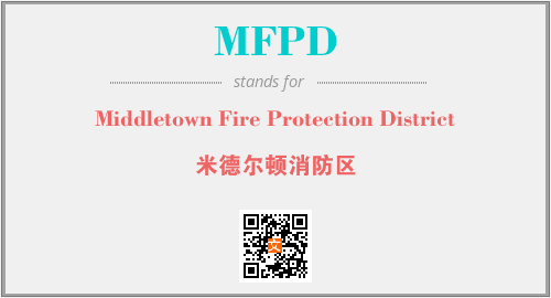上述内容是“Middletown Fire Protection District”作为“MFPD”的缩写,解释为“米德尔顿消防区”时的信息,以及英文缩略词MFPD所代表的英文单词,其对应的中文拼音、详细解释以及在英文中的流行度和相关分类、应用领域及应用示例等。