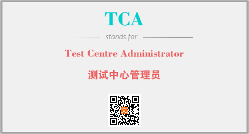 英文缩略词“TCA”经常作为“Test Centre Administrator”的英文缩写来使用,中文表示:“测试中心管理员”。本文将详细介绍英文缩写词TCA所代表英文单词,其对应的中文拼音、详细解释以及在英语中的流行度。此外,还有关于缩略词TCA的分类、应用领域及相关应用示例等。