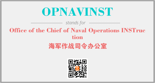 上述内容是“Office of the Chief of Naval Operations INSTruction”作为“OPNAVINST”的缩写,解释为“海军作战司令办公室”时的信息,以及英文缩略词OPNAVINST所代表的英文单词,其对应的中文拼音、详细解释以及在英文中的流行度和相关分类、应用领域及应用示例等。