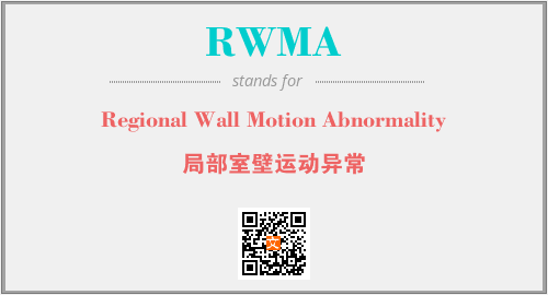 英文缩略词“RWMA”经常作为“Regional Wall Motion Abnormality”的英文缩写来使用,中文表示:“局部室壁运动异常”。本文将详细介绍英文缩写词RWMA所代表英文单词,其对应的中文拼音、详细解释以及在英语中的流行度。此外,还有关于缩略词RWMA的分类、应用领域及相关应用示例等。