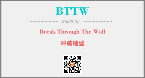 以上为Break Through The Wall英文缩略词BTTW的中文解释,以及该英文缩写在英语的流行度、分类和应用领域方面的信息。