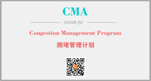 英文缩略词“CMA”经常作为“Congestion Management Program”的英文缩写来使用,中文表示:“拥堵管理计划”。本文将详细介绍英文缩写词CMA所代表英文单词,其对应的中文拼音、详细解释以及在英语中的流行度。此外,还有关于缩略词CMA的分类、应用领域及相关应用示例等。