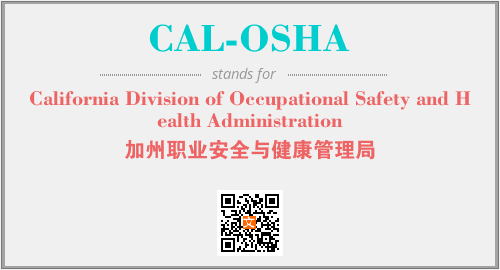 英文缩略词“CAL-OSHA”经常作为“California Division of Occupational Safety and Health Administration”的英文缩写来使用,中文表示:“加州职业安全与健康管理局”。本文将详细介绍英文缩写词CAL-OSHA所代表英文单词,其对应的中文拼音、详细解释以及在英语中的流行度。此外,还有关于缩略词CAL-OSHA的分类、应用领域及相关应用示例等。