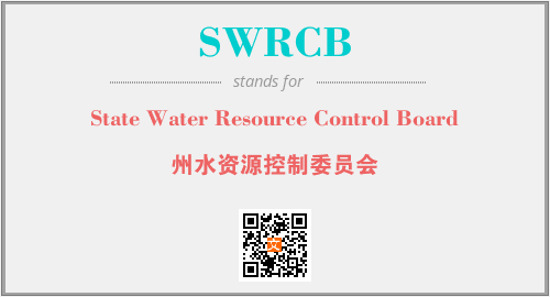 上述内容是“State Water Resource Control Board”作为“SWRCB”的缩写,解释为“州水资源控制委员会”时的信息,以及英文缩略词SWRCB所代表的英文单词,其对应的中文拼音、详细解释以及在英文中的流行度和相关分类、应用领域及应用示例等。