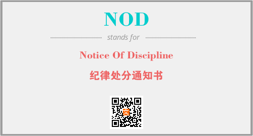 英文缩略词“NOD”经常作为“Notice Of Discipline”的英文缩写来使用,中文表示:“纪律处分通知书”。本文将详细介绍英文缩写词NOD所代表英文单词,其对应的中文拼音、详细解释以及在英语中的流行度。此外,还有关于缩略词NOD的分类、应用领域及相关应用示例等。