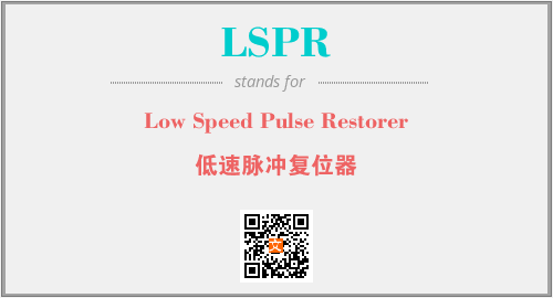上述内容是“Low Speed Pulse Restorer”作为“LSPR”的缩写,解释为“低速脉冲复位器”时的信息,以及英文缩略词LSPR所代表的英文单词,其对应的中文拼音、详细解释以及在英文中的流行度和相关分类、应用领域及应用示例等。