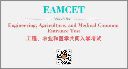 英文缩略词“EAMCET”经常作为“Engineering, Agriculture, and Medical Common Entrance Test”的英文缩写来使用,中文表示:“工程、农业和医学共同入学考试”。本文将详细介绍英文缩写词EAMCET所代表英文单词,其对应的中文拼音、详细解释以及在英语中的流行度。此外,还有关于缩略词EAMCET的分类、应用领域及相关应用示例等。
