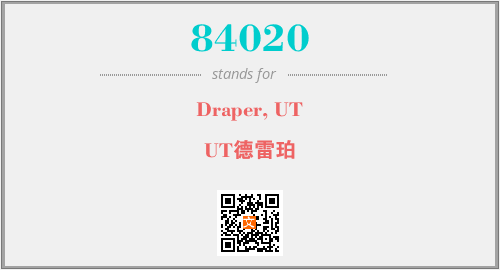 上述内容是“Draper, UT”作为“84020”的缩写,解释为“UT德雷珀”时的信息,以及英文缩略词84020所代表的英文单词,其对应的中文拼音、详细解释以及在英文中的流行度和相关分类、应用领域及应用示例等。