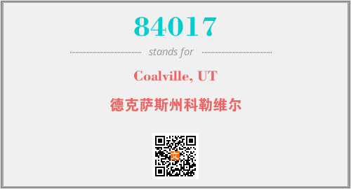 上述内容是“Coalville, UT”作为“84017”的缩写,解释为“德克萨斯州科勒维尔”时的信息,以及英文缩略词84017所代表的英文单词,其对应的中文拼音、详细解释以及在英文中的流行度和相关分类、应用领域及应用示例等。