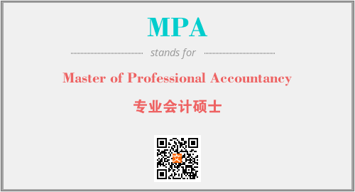 英文缩略词“MPA”经常作为“Master of Professional Accountancy”的英文缩写来使用,中文表示:“专业会计硕士”。本文将详细介绍英文缩写词MPA所代表英文单词,其对应的中文拼音、详细解释以及在英语中的流行度。此外,还有关于缩略词MPA的分类、应用领域及相关应用示例等。